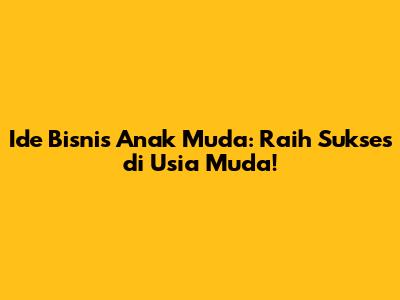 Ide Bisnis Anak Muda: Raih Sukses Di Usia Muda!