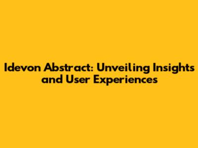 Idevon Abstract: Unveiling Insights And User Experiences