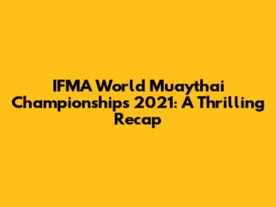 The IFMA World Muaythai Championships 2021 was an unforgettable event that celebrated the essence of Muaythai. It showcased the best fighters from around the world, creating a spectacle of skill, dedication, and sportsmanship. The championships provided a platform for rising stars to shine and for established champions to cement their legacies. The event fostered cultural exchange, promoted unity, and inspired a new generation of Muaythai enthusiasts. From the electrifying knockouts to the displays of respect and camaraderie, the championships offered a truly memorable experience for both athletes and spectators. The IFMA World Muaythai Championships 2021 will be remembered as a significant milestone in the history of Muaythai, contributing to its global growth and strengthening its core values. The championship's success sets a high bar for future events, promising even more thrilling contests, inspirational performances, and a continued celebration of the art of eight limbs.