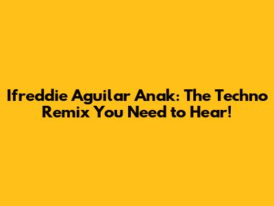 Ifreddie Aguilar Anak: The Techno Remix You Need To Hear!