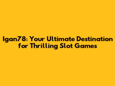 Igan78: Your Gateway To Exciting Slot Games