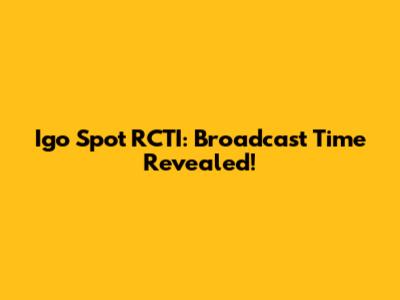 Igo Spot RCTI: Broadcast Time Revealed!