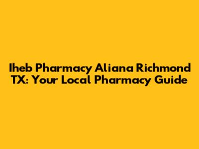 Hey guys! Looking for Iheb Pharmacy in Aliana, Richmond, TX? You've landed in the right spot! Let's dive into everything you need to know about this local pharmacy, making sure you get the best service and care.