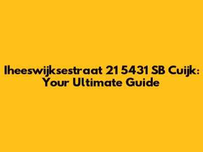 Alright, guys, let’s dive deep into everything you need to know about Iheeswijksestraat 21, located in the charming 5431 SB Cuijk. Whether you're planning a visit, considering moving here, or just plain curious, this is your go-to guide for all the essential details. We'll cover everything from the neighborhood vibe to local amenities, and maybe even some hidden gems along the way. So buckle up and let's get started!