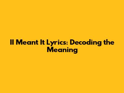 II Meant It Lyrics: Decoding The Meaning