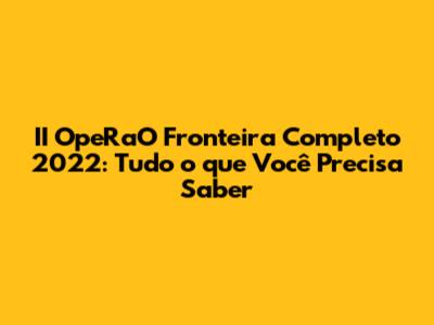 II OpeRaO Fronteira Completo 2022: Tudo O Que Você Precisa Saber