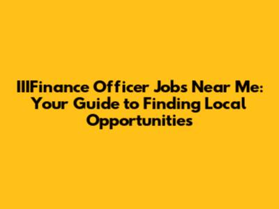 IIIFinance Officer Jobs: Find Opportunities Near You