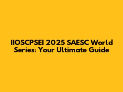 IIOSCPSEI 2025 SAESC World Series: What You Need To Know