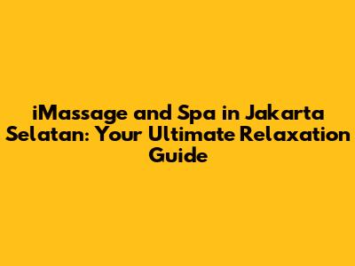 IMassage & Spa In Jakarta Selatan: Your Ultimate Relaxation Guide