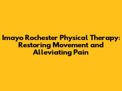 Hey there, folks! Ever found yourself dealing with aches, pains, or injuries that just won't quit? Well, you're not alone! Millions of people experience these issues daily, and that's where Imayo Rochester Physical Therapy steps in. We're gonna dive deep into everything about Imayo Rochester Physical Therapy – what they do, how they can help you, and why they're a top choice for people looking to get back on their feet (literally!). Get ready to learn about their amazing services and how they could be the key to unlocking a pain-free, active life.