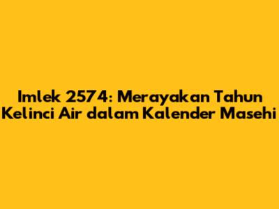 Nah, sekarang kita bahas tentang tahun 2023 yang bertepatan dengan Imlek 2574. Tahun 2023 adalah tahun Kelinci Air. Dalam astrologi Tionghoa, setiap tahun dikaitkan dengan salah satu dari 12 shio atau zodiak Tionghoa, serta salah satu dari lima elemen: kayu, api, tanah, logam, dan air. Kelinci adalah simbol umur panjang, kedamaian, dan kemakmuran. Air melambangkan kelenturan, adaptasi, dan intuisi. Kombinasi Kelinci Air ini menjanjikan tahun yang damai, harmonis, dan penuh dengan peluang untuk pertumbuhan dan kemajuan. Wah, menarik banget, kan?