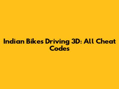 Indian Bikes Driving 3D: All Cheat Codes