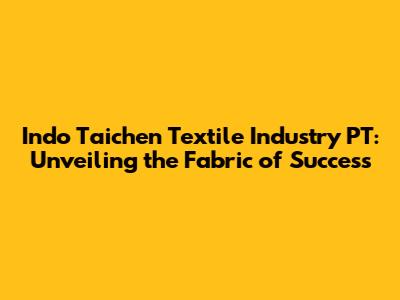 Hey guys! Let's dive deep into the world of Indo Taichen Textile Industry PT. It's a name that might not be on everyone's radar, but trust me, they're making some serious waves in the textile industry. This article is your all-access pass to understanding who they are, what they do, and why they're a force to be reckoned with. We'll explore their history, their operations, the impact they're making, and even peek into their future. So, buckle up, textile enthusiasts, because we're about to unravel the story of Indo Taichen.
