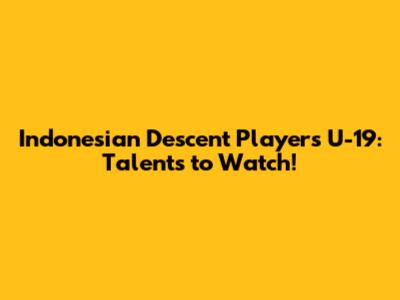 Indonesian Descent Players U-19: Talents To Watch!