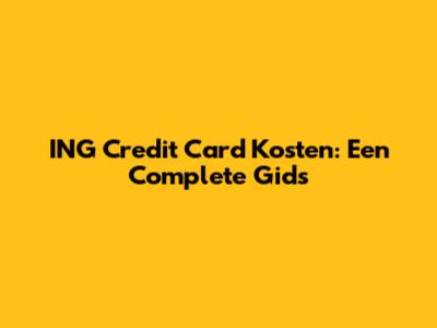 Veelgestelde Vragen over ING Credit Card Kosten