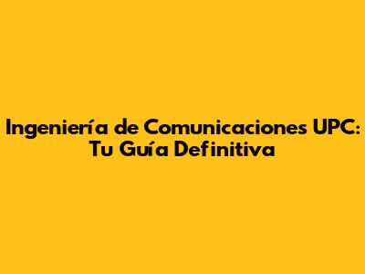 Ingeniería De Comunicaciones En La UPC: Guía Completa