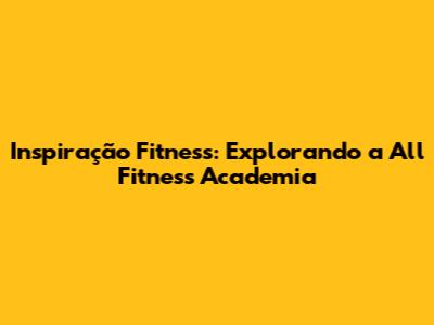 Inspiração Fitness: Explorando A All Fitness Academia