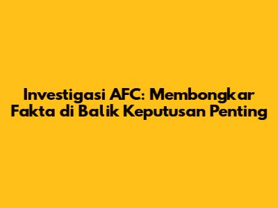 Investigasi AFC: Temuan Dan Dampaknya