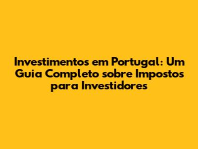 Investimentos Em Portugal: Guia Completo Sobre Impostos