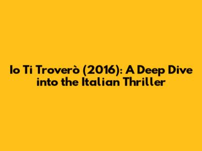 Hey guys! Let's dive into the captivating world of Italian cinema with a closer look at the 2016 thriller, Io ti troverò (which translates to I Will Find You). This movie is a rollercoaster of suspense, drama, and intense performances. We’re going to explore what makes this film a standout, its plot, the brilliant cast, and the overall impact it leaves on its audience. So, grab your popcorn, and let’s get started!