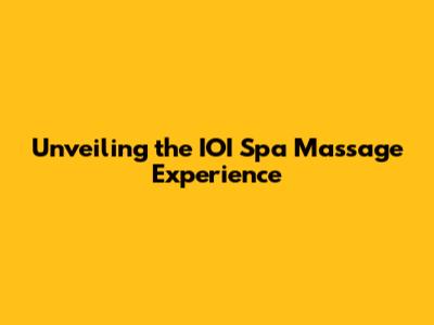IOI Spa Massage: Your Guide To Relaxation