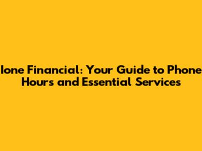 Ione Financial: Phone Hours, Services, And More