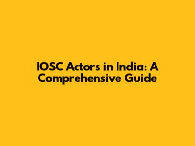 IOSC Actors In India: A Comprehensive Guide