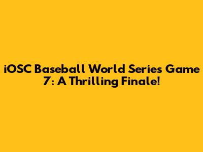 IOSC Baseball World Series Game 7: A Thrilling Finale!
