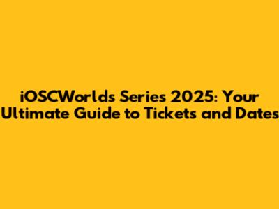 IOSCWorld's Series 2025: Tickets, Dates, And What You Need To Know