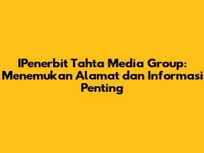 Dengan mengetahui informasi ini, kalian bisa lebih siap dan percaya diri saat berinteraksi dengan IPenerbit Tahta Media Group. Jangan ragu untuk mencari informasi tambahan di situs web resmi mereka atau menghubungi mereka secara langsung.