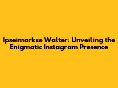 Who is Ipseimarkse Walter? A Deep Dive