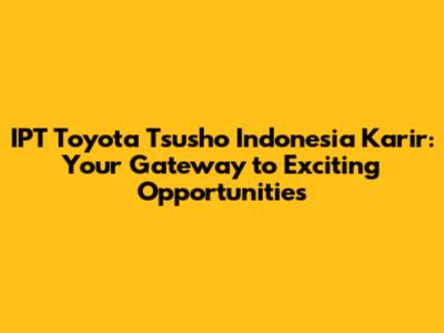 Hey guys! Are you on the hunt for a fantastic career opportunity in Indonesia? Have you considered IPT Toyota Tsusho Indonesia? This company isn't just a place to work; it's a launchpad for your professional growth and a chance to be part of something big. Let's dive deep into why IPT Toyota Tsusho Indonesia could be the perfect fit for you, exploring the karir (career) prospects, the company culture, and what it takes to land your dream job.