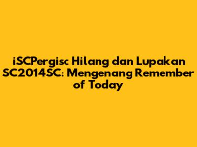 Guys, mari kita simpulkan. iSCPergisc mungkin sudah hilang, tapi kenangan tentangnya akan selalu hidup dalam diri kita. SC2014SC adalah bukti bahwa kita bisa melakukan apa saja jika kita bersatu. Dan Remember of Today adalah soundtrack dari kenangan-kenangan indah yang takkan pernah pudar. Jangan biarkan semua ini terlupakan. Mari kita terus mengenang, berbagi cerita, dan merayakan masa lalu kita. Karena, pada akhirnya, kenangan adalah harta yang paling berharga. Jadi, cheers untuk iSCPergisc, SC2014SC, dan Remember of Today! Semoga semangat kebersamaan, persahabatan, dan kenangan indah selalu menyertai kita.