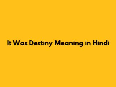 It Was Destiny: Meaning & Impact In Hindi