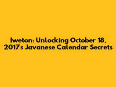 Iweton: Unlocking October 18, 2017's Javanese Calendar Secrets