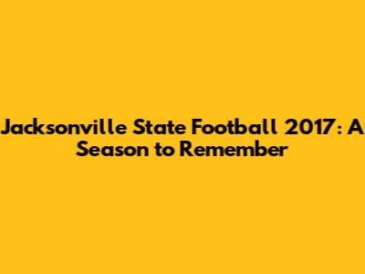 The 2017 season had a lasting impact on the Jacksonville State Football program. It created memories for the fans, shaped the culture, and helped build a legacy of success. The success of the team inspired future generations of players and fans. The impact of the 2017 season extended far beyond the field, shaping the team's culture, influencing future teams, and fostering a strong sense of pride and community. It showed what's possible with hard work, dedication, and teamwork. The season had a significant impact on the football program and left an indelible mark on the university.