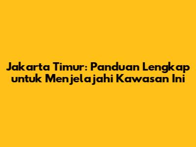 Jakarta Timur: Panduan Lengkap Untuk Menjelajahi Kawasan Ini
