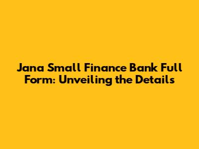 Jana Small Finance Bank: What Does It Stand For?