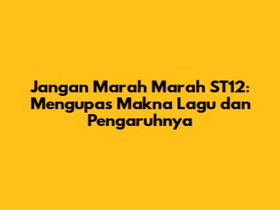 Jangan Marah Marah ST12, sebuah lagu yang merdu dan penuh emosi dari grup band ST12, telah berhasil menyentuh hati jutaan pendengar di Indonesia. Lagu ini, yang sarat dengan pesan tentang kesabaran, penerimaan, dan pentingnya mengendalikan emosi, bukan hanya sekadar alunan musik yang enak didengar, tetapi juga sebuah renungan yang mendalam tentang kehidupan. Mari kita selami lebih dalam makna di balik liriknya, resonansinya dengan pendengar, dan mengapa lagu ini terus relevan hingga kini.