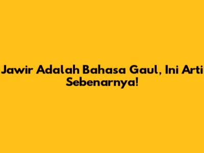 Jawir Adalah Bahasa Gaul, Ini Arti Sebenarnya!