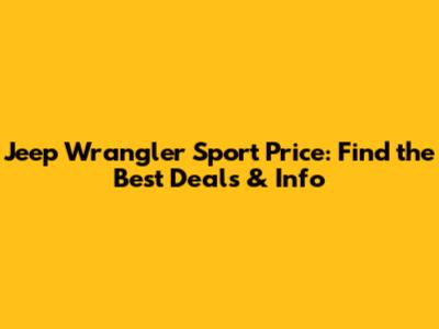 Jeep Wrangler Sport Price: Find The Best Deals & Info