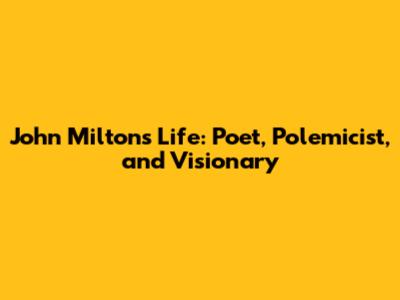 John Milton's Life: Poet, Polemicist, And Visionary
