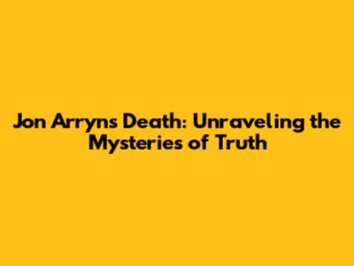 Jon Arryn's Death: Unraveling The Mysteries Of Truth