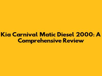 Kia Carnival Matic Diesel 2000: A Comprehensive Review