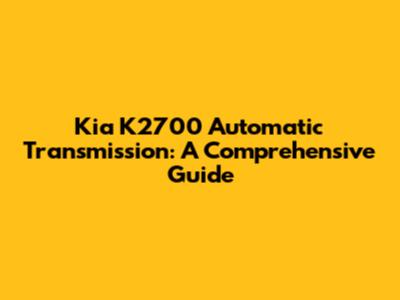 Kia K2700 Automatic Transmission: Everything You Need To Know