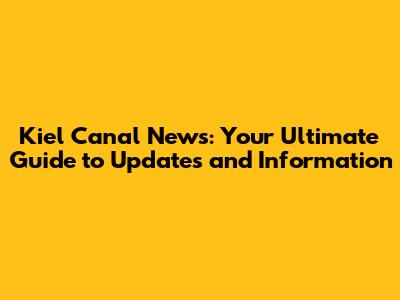 Kiel Canal: Your Go-To Guide For News & Updates
