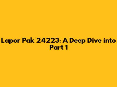 Lapor Pak 24223: A Deep Dive Into Part 1