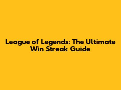 League Of Legends: The Ultimate Win Streak Guide