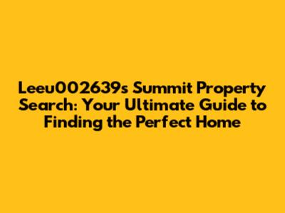 Leeu002639s Summit Homes: Your Ultimate Property Search Guide