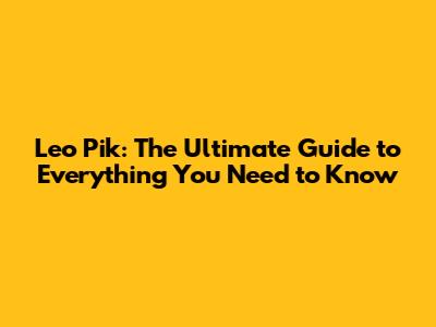 Leo Pik: The Ultimate Guide To Everything You Need To Know